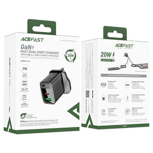 Acefast Gan Dual Port Charger With USB-A+USB-C Ports 20W - A79 Black
