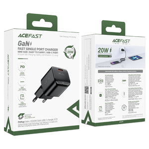 Acefast GaN Fast Single Port Charger Set مع منفذ USB‑C وكابل USB‑C بطول 1.2 متر – AF‑22 Black