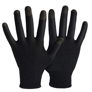 المواد: مزيج من القماش القابل للتمدد والسيليكون أو المطاط على الأصابع لتوفير قبضة أفضل على الماوس أو الشاشة.