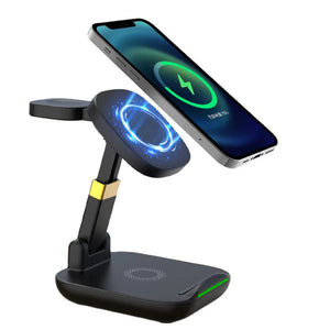 | الميزات الإضافية | شحن مغناطيسي مدموج (MagSafe‑like)، تصميم مدمج ومستقر، دعم الشحن السريع. |