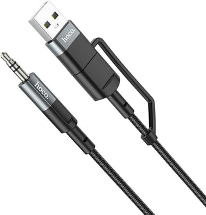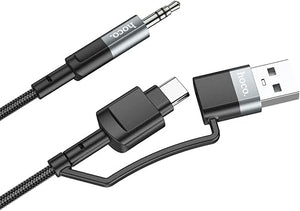 Hoco 2 IN 1 Digtal Audio Conversion Cable Aux TO Typ-C And Usb-A 1M UPA23 - Black