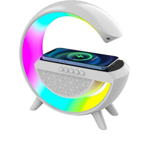 سماعة Hoco DS43 اللاسلكية تجمع بين ثلاث وظائف في تصميم أنيق: مكبر صوت، شاحن لاسلكي، وإضاءة محيطية، مما يجعلها مثالية للاستخدام في المنزل أو المكتب.