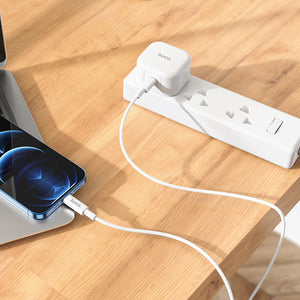 الكابل المرفق: كابل USB‑C إلى Lightning بطول 1 م من نوع X37 لصالح الأجهزة Apple، يدعم الشحن السريع ونقل البيانات بسرعة جيدة