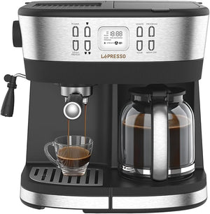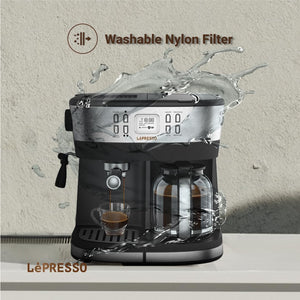 Lepresso Dual Brew Drip Coffee & Espresso Milk Steamer Flow Meter 15 Bar LP002