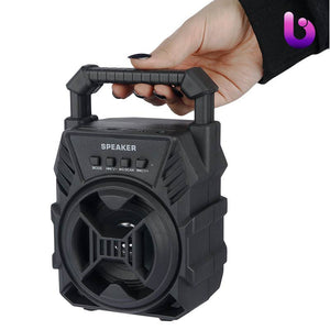 يأتي مزودًا بـ فتحة Micro‑SD (TF) ومنافذ USB وAUX (3.5 مم)، بالإضافة إلى راديو FM مدمج، مما يوفر خيارات تشغيل مرنة للموسيقى
