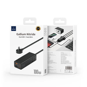 Wiwu Wall Desktop Powerstrip Gallium Nitride Dual Usb-C + Dual Usb-A 100W
