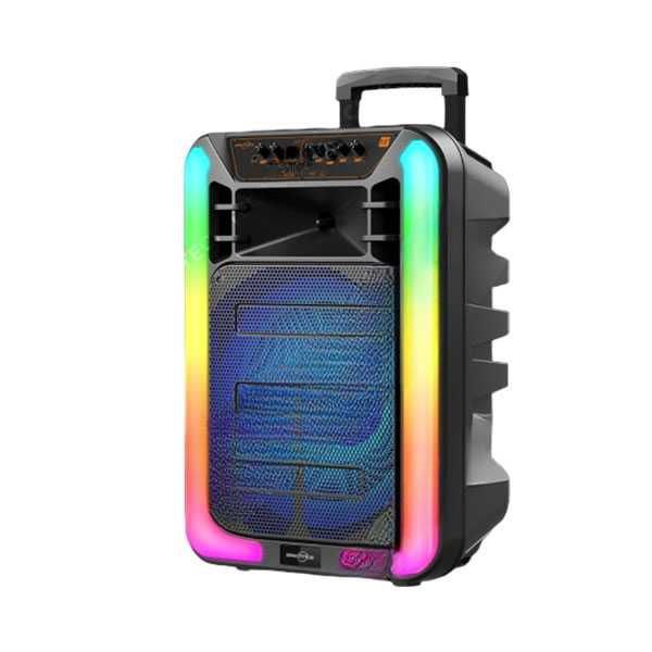منافذ تشغيل متعددة : بلوتوث (5.0+)، USB، TF/micro‑SD، راديو FM، إقران TWS، ومقبس ميكروفون للكاريوكي