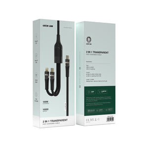 كابل شحن سريع شفاف 2 في 1 من جرين ليون، 100 وات، 1.2 متر
