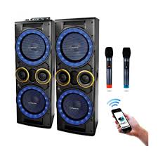 الميكروفونات اللاسلكية : تتضمن ميكروفونين لاسلكيين، مثاليين لجلسات الكاريوكي أو مشاركات في الاحداث أمام الجمهور. إضاءة LED : تتميز بضواء LED التي تتزامن مع الموسيقى، مما يجعلها مخصصة.