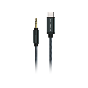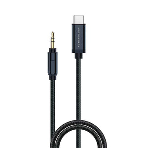 كابل صوت مضفر من الألومنيوم من Powerlogy من النوع c إلى موصل Aux بطول 1.2 متر - أسود
