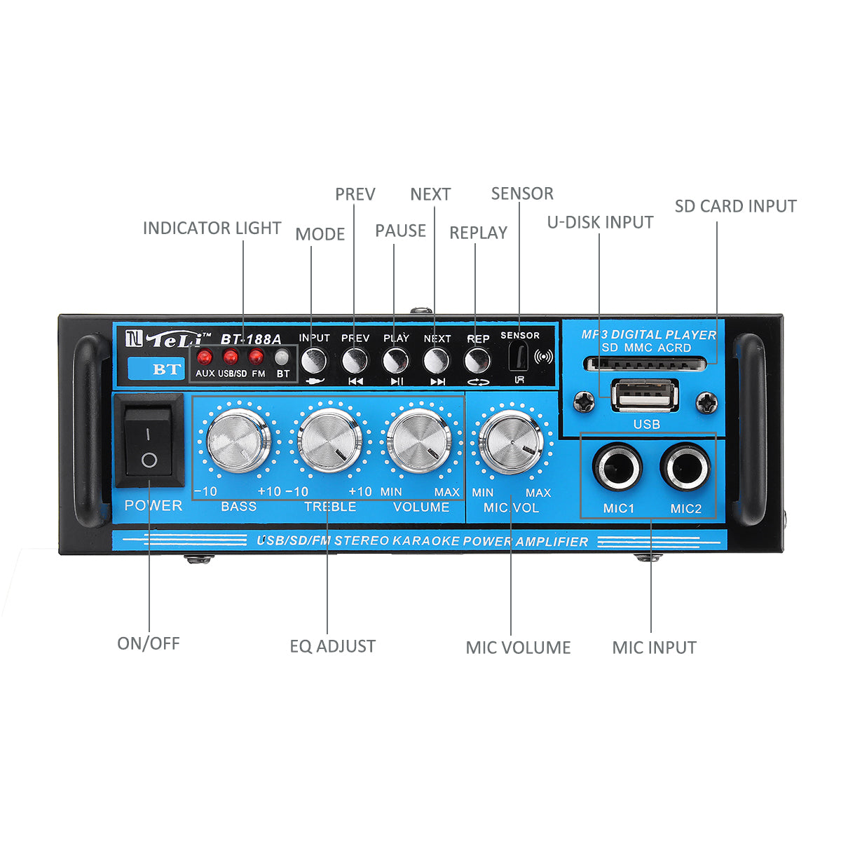 BT-188A هو خيار إيجابي الايجابيين إلى جهاز مكبر صوت موثوق وفعال ويتميز بجودة صوت عالية مع مزايا تكنولوجية حديثة.